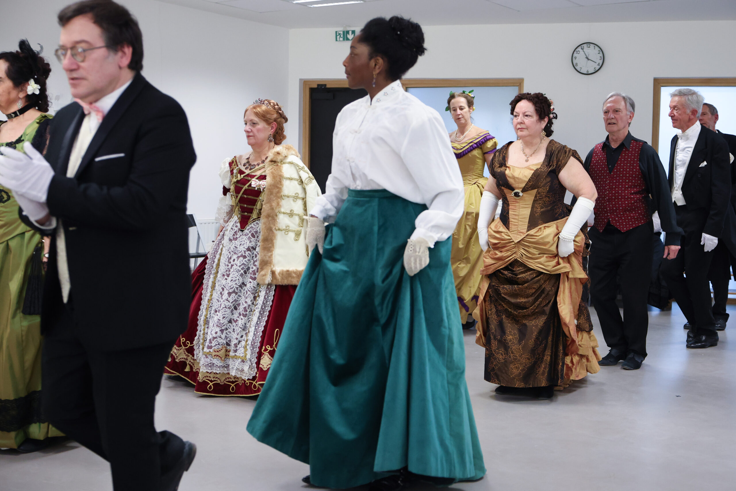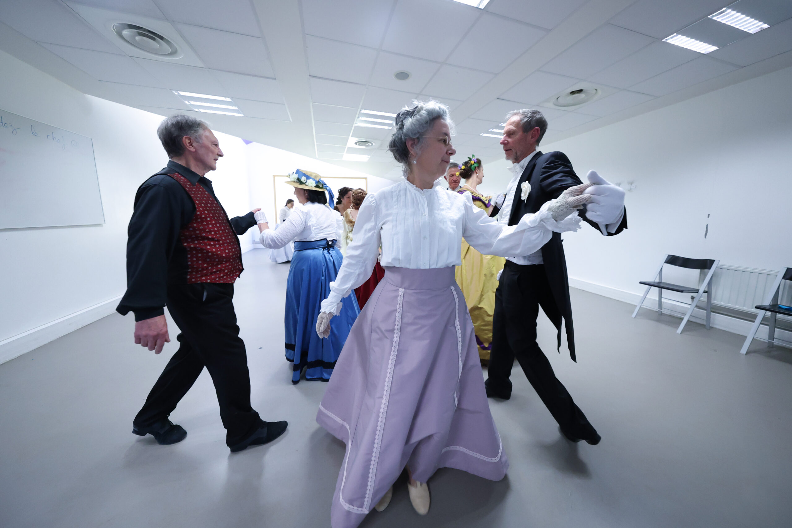 - Petit bal costumé organisé lors de notre dernière séance de 2025 à Vasarely. Nous recevions les journalistes du journal municipal pour un article à paraître en janvier 2026. Pour mettre en valeur nos activités DANSES et COSTUMES du XIXe, nous portions les différentes tenues du Second empire et de la Belle-Epoque. Quelques photos nous ont été transmises par Samy le photographe d’Antony.